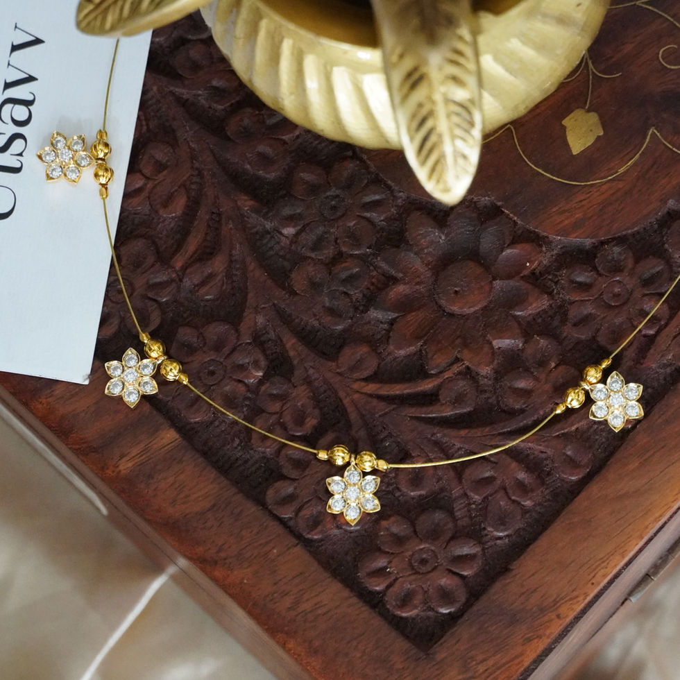 This is a delicate and elegant invisible chain featuring flower-shaped embellishments. Crafted with gold and adorned with sparkling stones, it offers a minimalistic yet stunning look, perfect for any occasion.